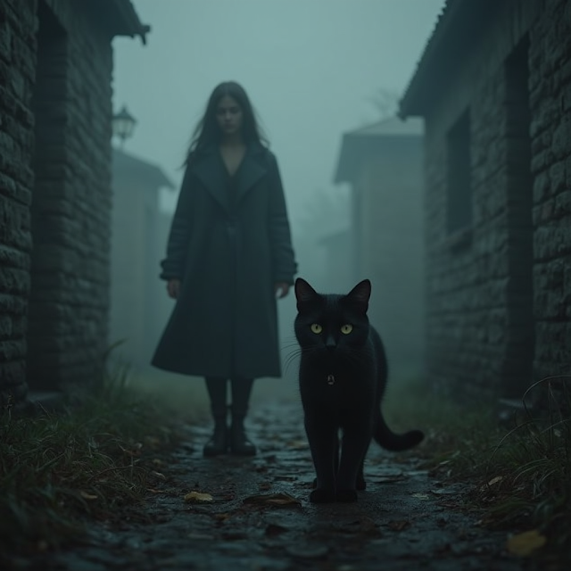 "Mittens", susurró, incrédula. Su gato negro apareció frente a ella, pero no era exactamente el mismo. Sus ojos brillaban con una inteligencia desconocida, y al acercarse, Alison escuchó una voz suave en su mente: "¿Me buscabas, pequeña viajera?"
